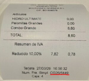 - Si he comprado un Combo Promocionado junto con mi entrada de cine en taquilla, introduciré los números que aparecen subrayados en el ticket de compra tal y como aparece en la imagen 1.